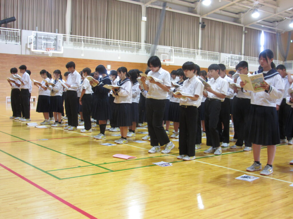 9月30日(火)放課後、明日の生徒総会に向けて、生徒会執行部と委員長、代議員の生徒がリハーサルを行いました。明日スムーズに進行できるように、1つ1つ確認しながら行いました。