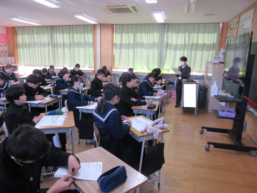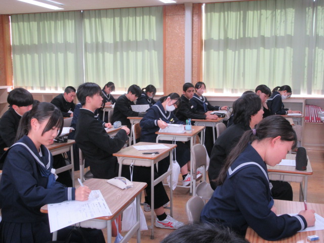 中教研学力調査に向けて、3年生は放課後に「島田塾~社会科特講~」を行いました。3年生の様子を見ると、少しずつですが受験生の意識が芽生え始めているのが伝わります。頑張れ、受験生!