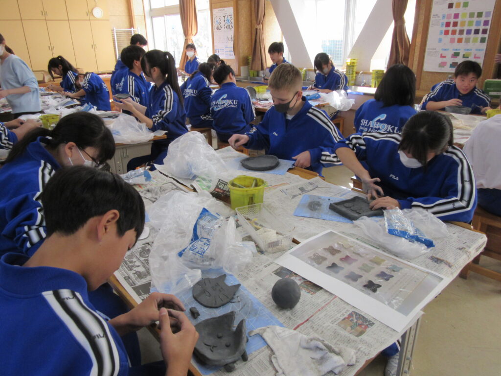 2年生は、美術の授業で陶芸に取り組んでいます。思い思いの形に粘土を成形して、お皿やどんぶりを作っています。完成が楽しみです。