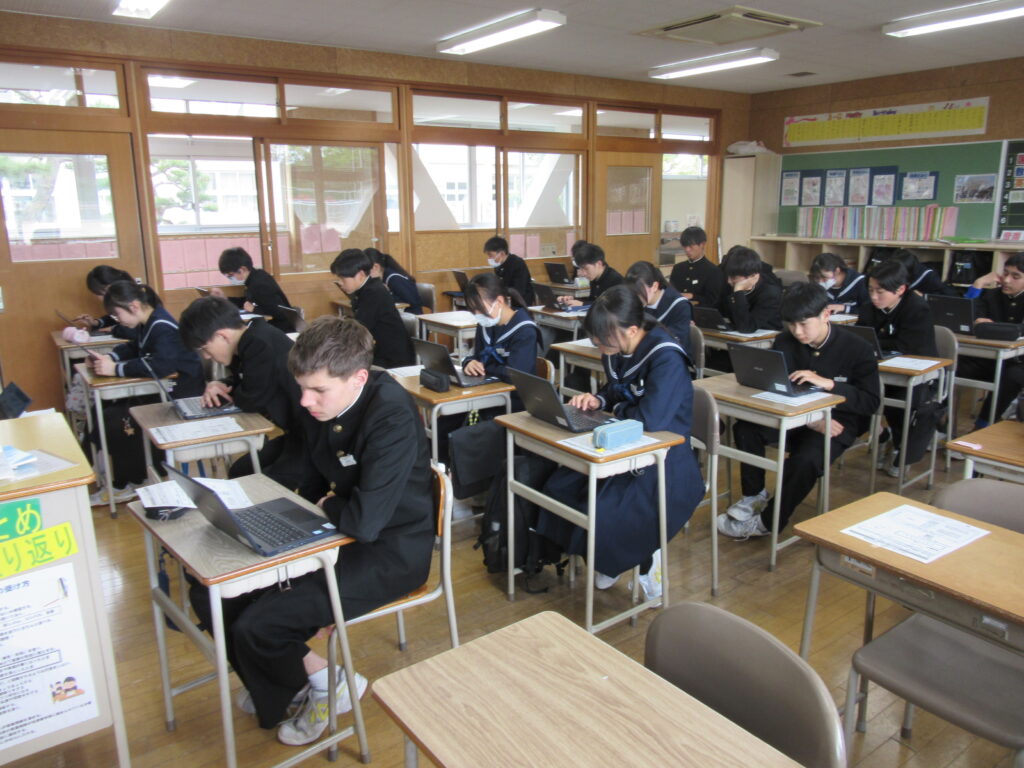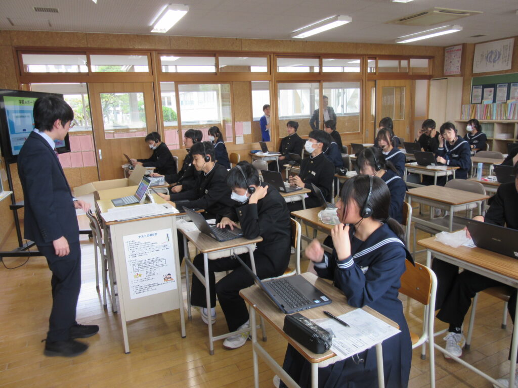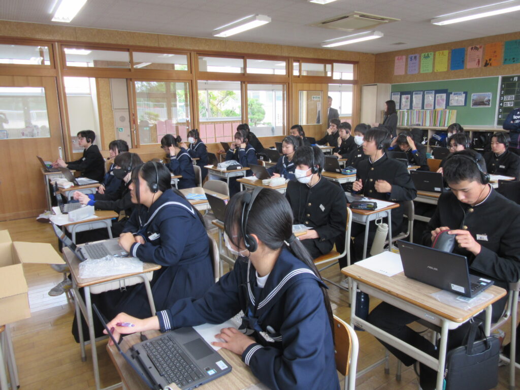 4月22日(水)、3年生は全国学力学習状況調査がありました。今日は、タブレットを使って行いました。英語の「聞くこと」の調査では、ヘッドセットを使いましたが、事前リハーサルの通りしっかりと取り組むことができました。