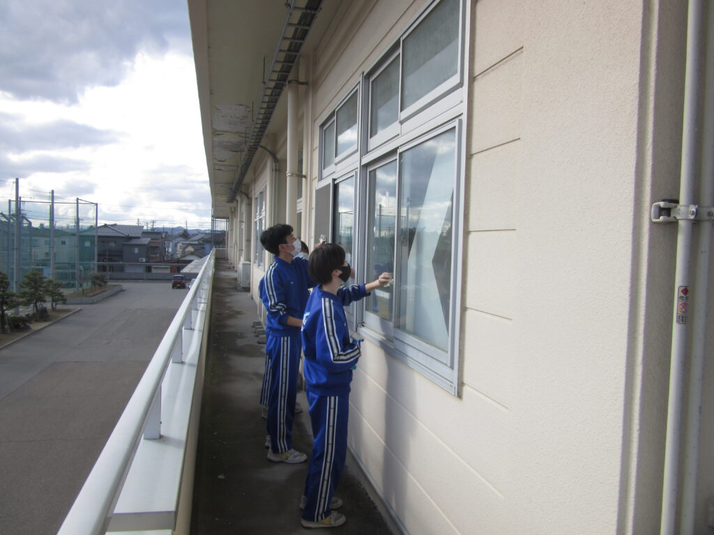 整備委員会による、重点清掃が始まりました。1日目の今日は重点項目は「窓」でした。新聞等を使って、窓ガラスを丁寧に磨いていました。来週には卒業式も行われます。この機会に校舎をキレイにしましょう。