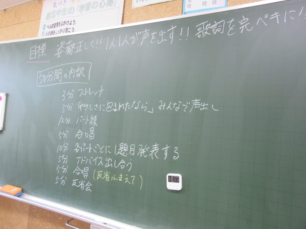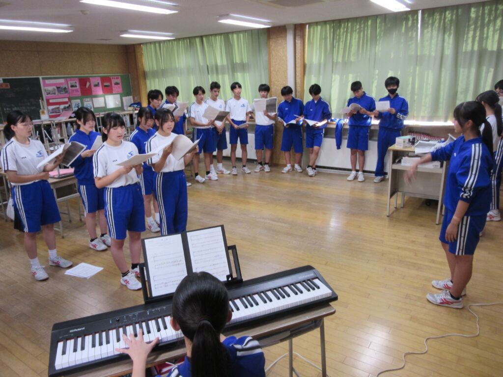 合唱練習スタート 投稿日時: 2025年10月17日 投稿者: admin 合唱コンクールに向けて、10月17日(金)から放課後の合唱練習が始まりました。指揮者や伴奏者、パートリーダーを中心に、熱心に練習していました。クラスの黒板に、練習メニューを書いて練習しているクラスもありました。