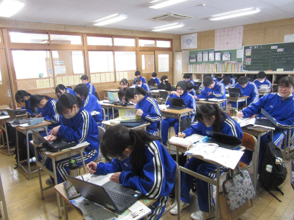 1月23日(金)、2年生は高校調べの続きを行いました。私立高校を調べ終え、県立高校や高等専門学校を調べ始める生徒も増えてきました。自宅からの距離や通学時間も調べており、「朝○時に家を出ないといけないから△時には起きないといけない」と具体的に考えている生徒もみられました。