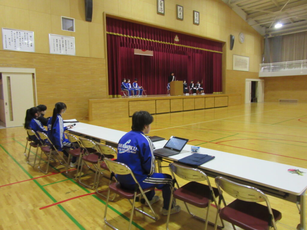 3月4日(水)放課後、選挙管理委員と立候補者が生徒会選挙のリハーサルを行いました。当日の流れや声の大きさなどを確認しました。