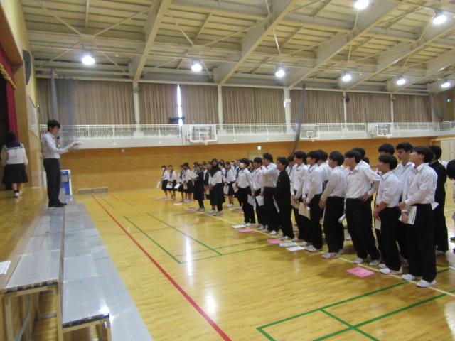 10月16日(木)放課後、各クラスの指揮者や伴奏者、パートリーダーが集まり、合唱コンクールまでの日程について確認したり、合唱練習の計画づくりをしたりしました。明日から始まる合唱練習が、より充実したものになるようにリーダー同士で話し合いました。