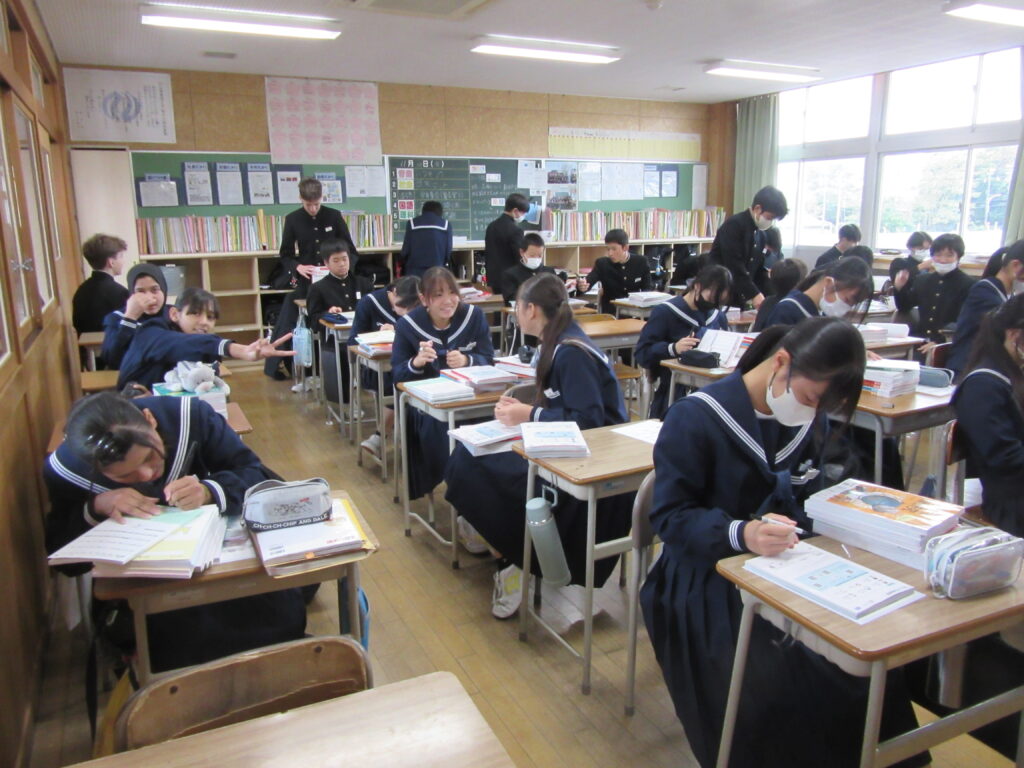 中教研学力調査に向けて、3年生は放課後に「島田塾~社会科特講~」を行いました。3年生の様子を見ると、少しずつですが受験生の意識が芽生え始めているのが伝わります。頑張れ、受験生!