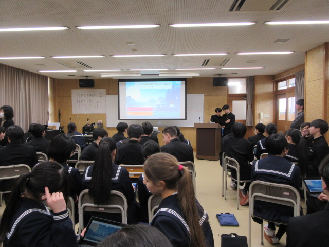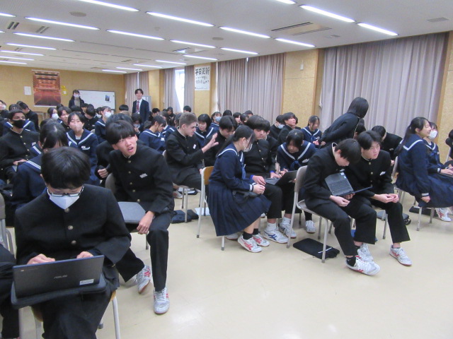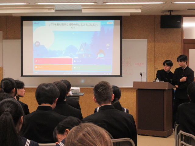 19日(金)3限に1学年ではkahoot!!を使ったクイズ大会を行いました。企画から運営まで全て生徒の手で行われました。クイズは楽しく、2学期の学習内容を振り返るものばかりでした。学年生徒会のおかげで大盛り上がりの1時間となりました。