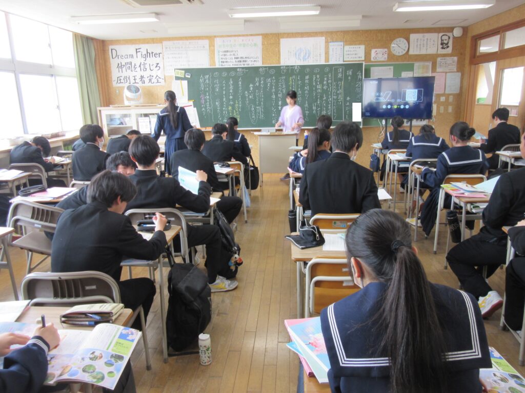 2学年では22日(水)5限に進路集会を行いました。学年主任から「進路学習とは幸せな人生について考えること」「高校進学のために今何をすべきか」等の話がありました。