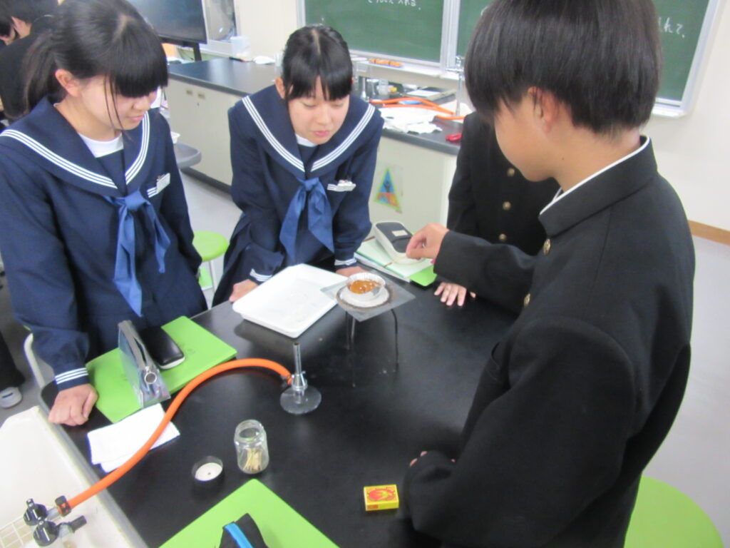 3年生の理科では、化学変化とイオンについて勉強しています。今日は、いろいろな液体に電流が流れるかどうかを調べる実験を行いました。予想を立てて実験を行い、電流が流れる液体の共通点を考えました。