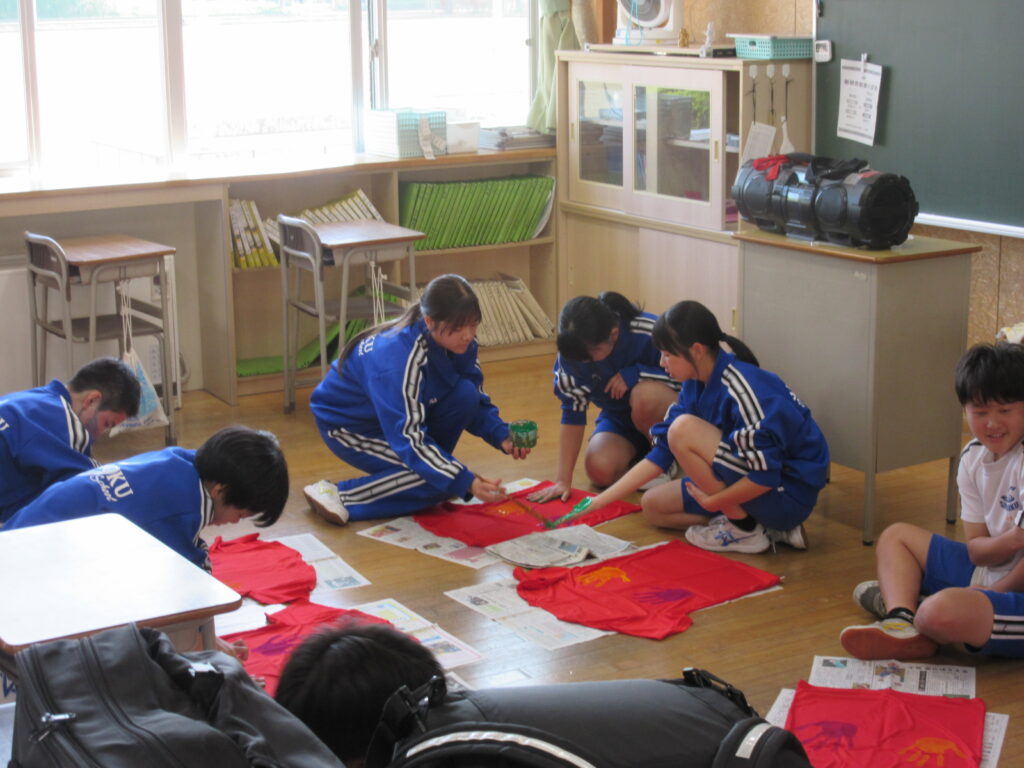 運動会に向けて、今日も放課後に団活動やマスコットの活動がありました。2年生と3年生が力を合わせて頑張っています。