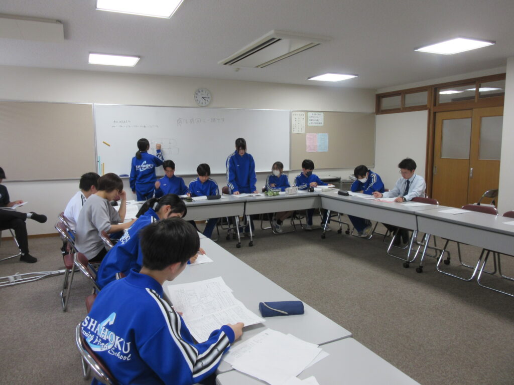 4月23日(木)、運動会の結団式と団ミーティングがありました。実行委員からの挨拶があった後に、団ごとに分かれてミーティングを行いました。リレーの選手を選んだり100m走の走順を決めたりしました。
